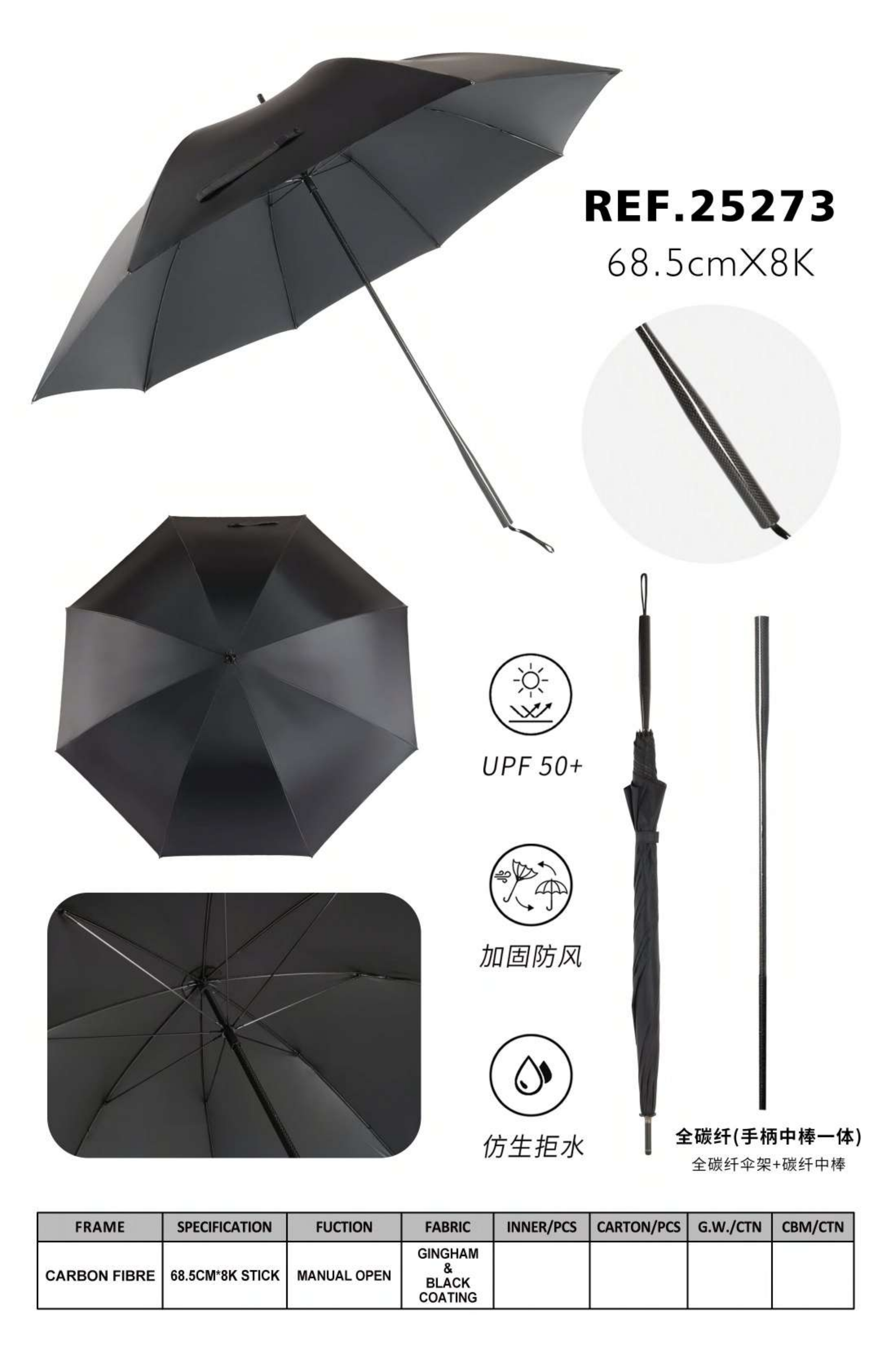Ultra-Light Carbon Fiber Umbrella with UPF 50+